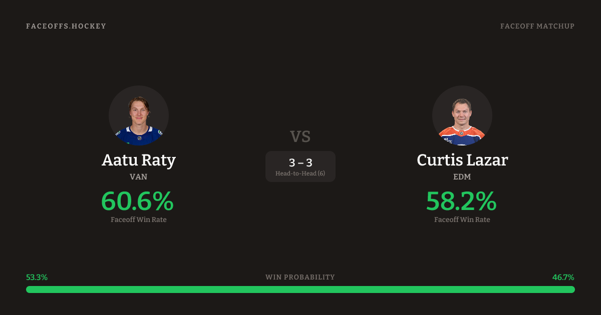 Aatu Raty vs Curtis Lazar — Faceoff Head-to-Head