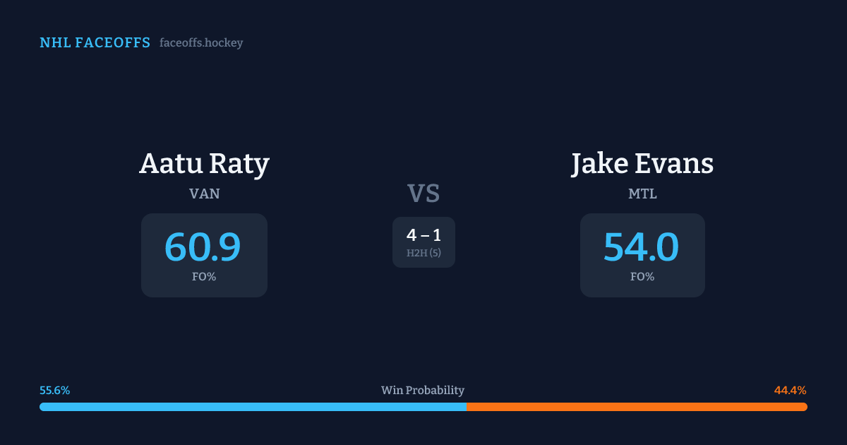 Aatu Raty vs Jake Evans — Faceoff Head-to-Head