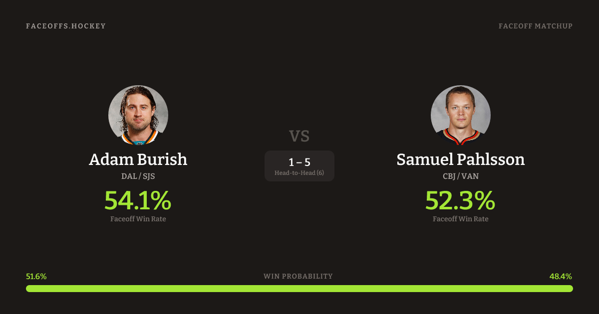 Adam Burish vs Samuel Pahlsson — Faceoff Head-to-Head