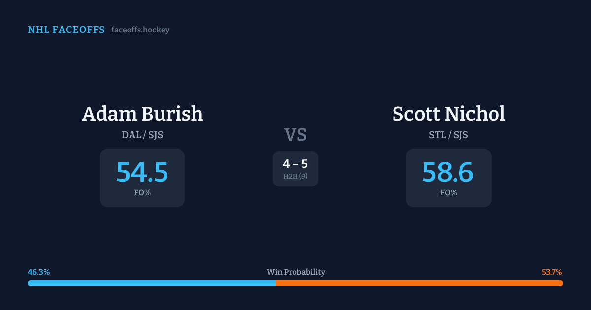 Adam Burish vs Scott Nichol — Faceoff Head-to-Head