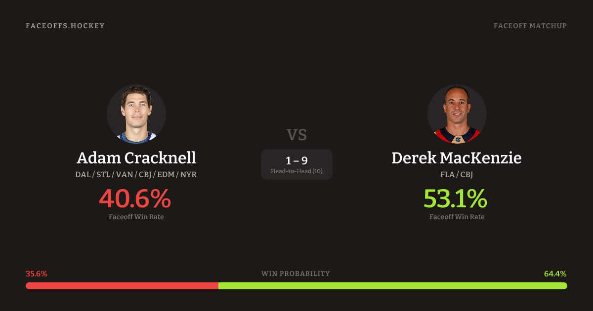 Adam Cracknell vs Derek MacKenzie — Faceoff Head-to-Head