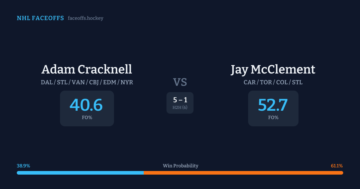 Adam Cracknell vs Jay McClement — Faceoff Head-to-Head