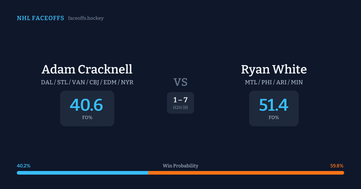 Adam Cracknell vs Ryan White — Faceoff Head-to-Head