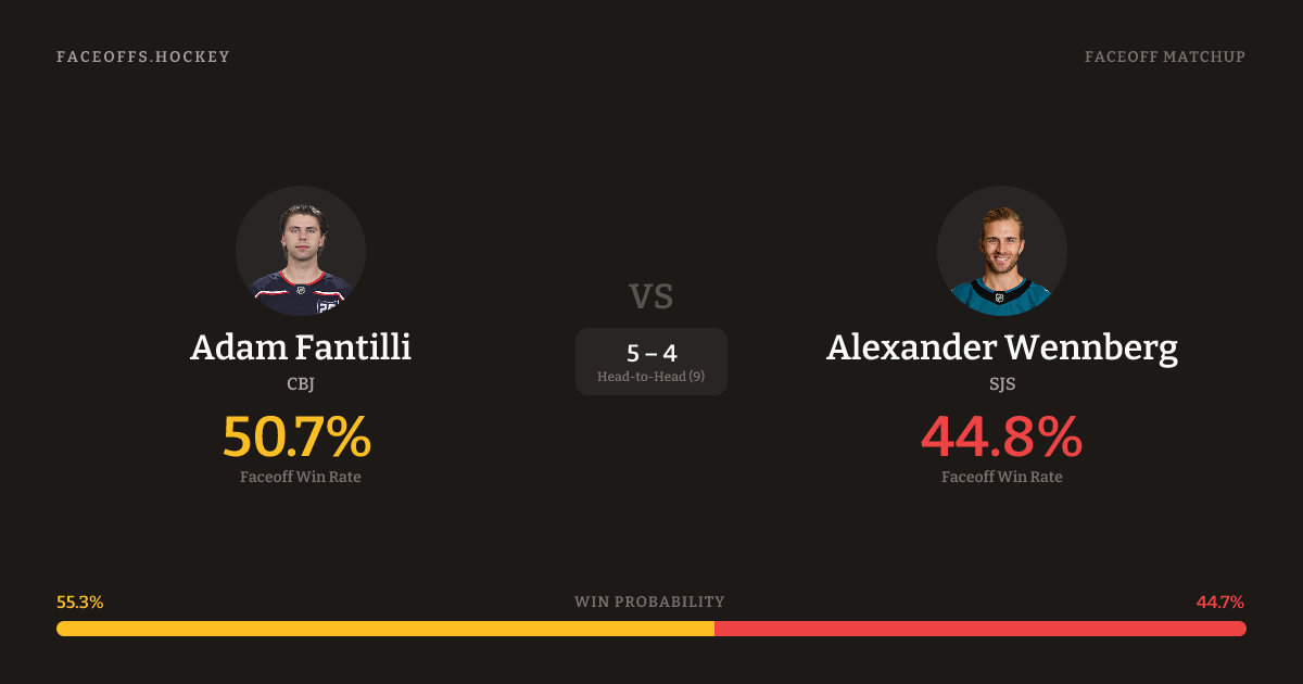 Adam Fantilli vs Alexander Wennberg — Faceoff Head-to-Head