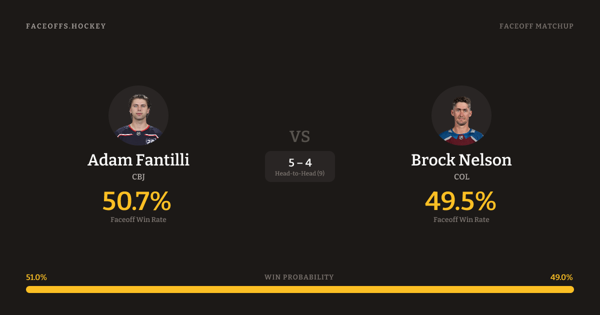 Adam Fantilli vs Brock Nelson — Faceoff Head-to-Head
