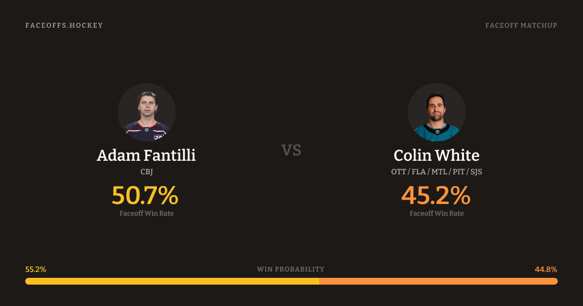 Fantilli 45.1% vs White 45.4% (-0.4%)