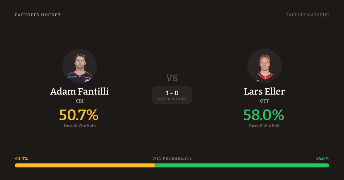 Adam Fantilli vs Lars Eller — Faceoff Head-to-Head