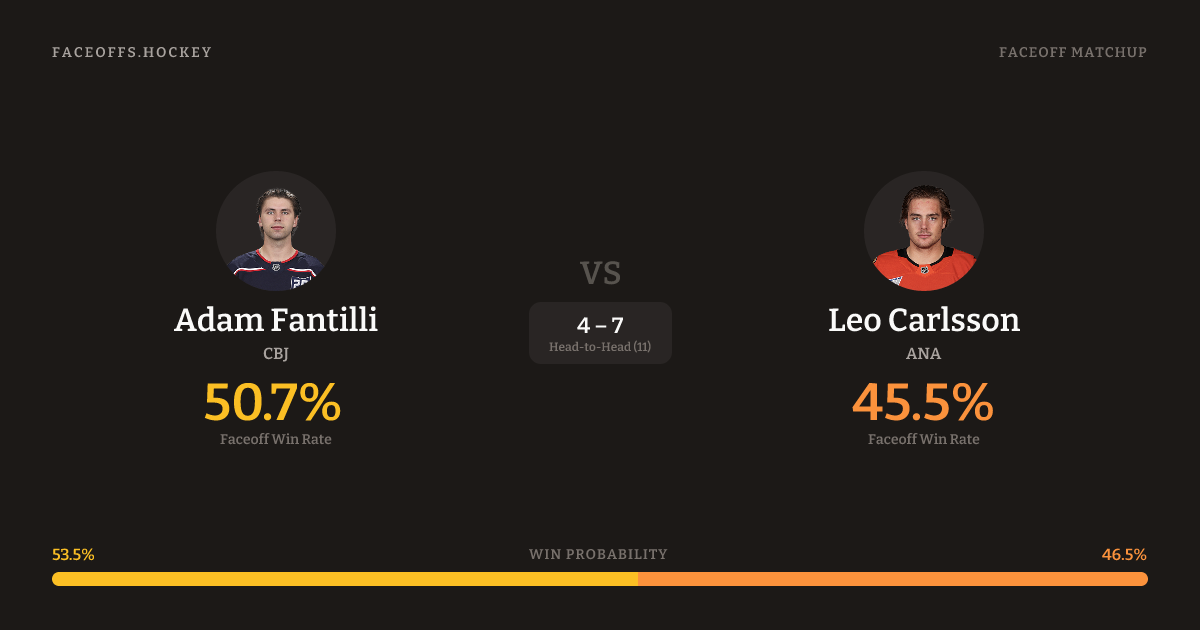 Adam Fantilli vs Leo Carlsson — Faceoff Head-to-Head