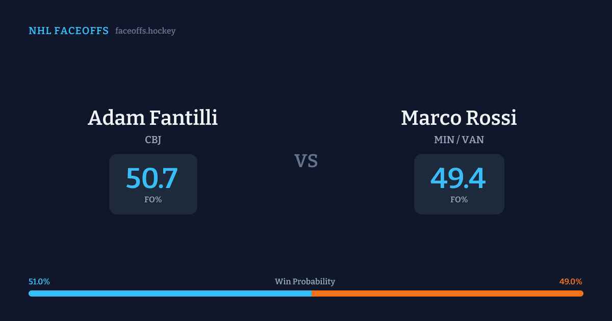 Adam Fantilli vs Marco Rossi — Faceoff Head-to-Head