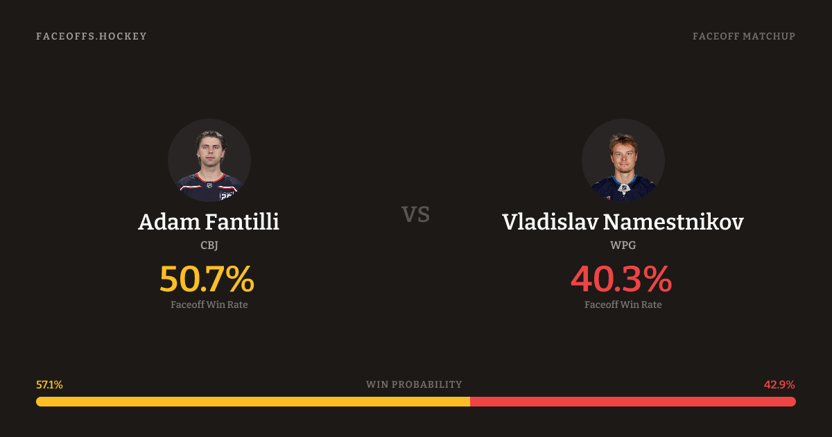 Fantilli 42.0% vs Namestnikov 46.6% (-4.9%)