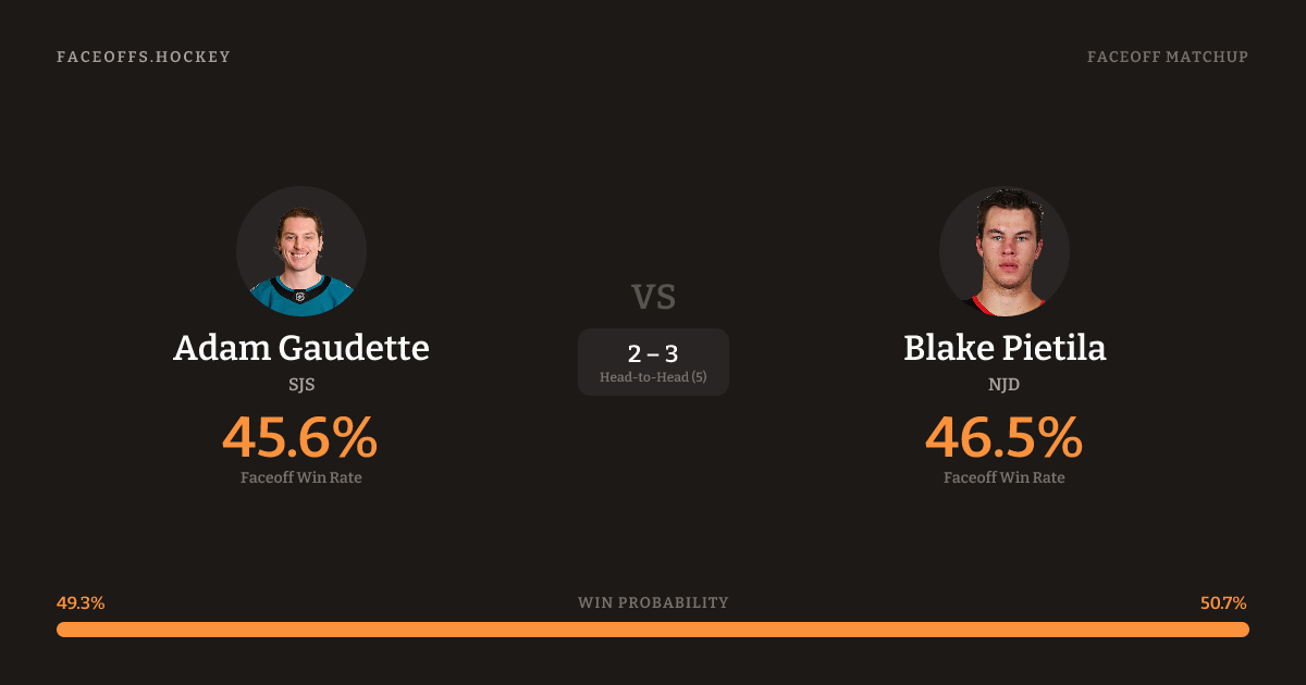 Adam Gaudette vs Blake Pietila — Faceoff Head-to-Head