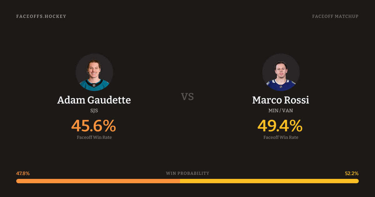 Adam Gaudette vs Marco Rossi — Faceoff Head-to-Head