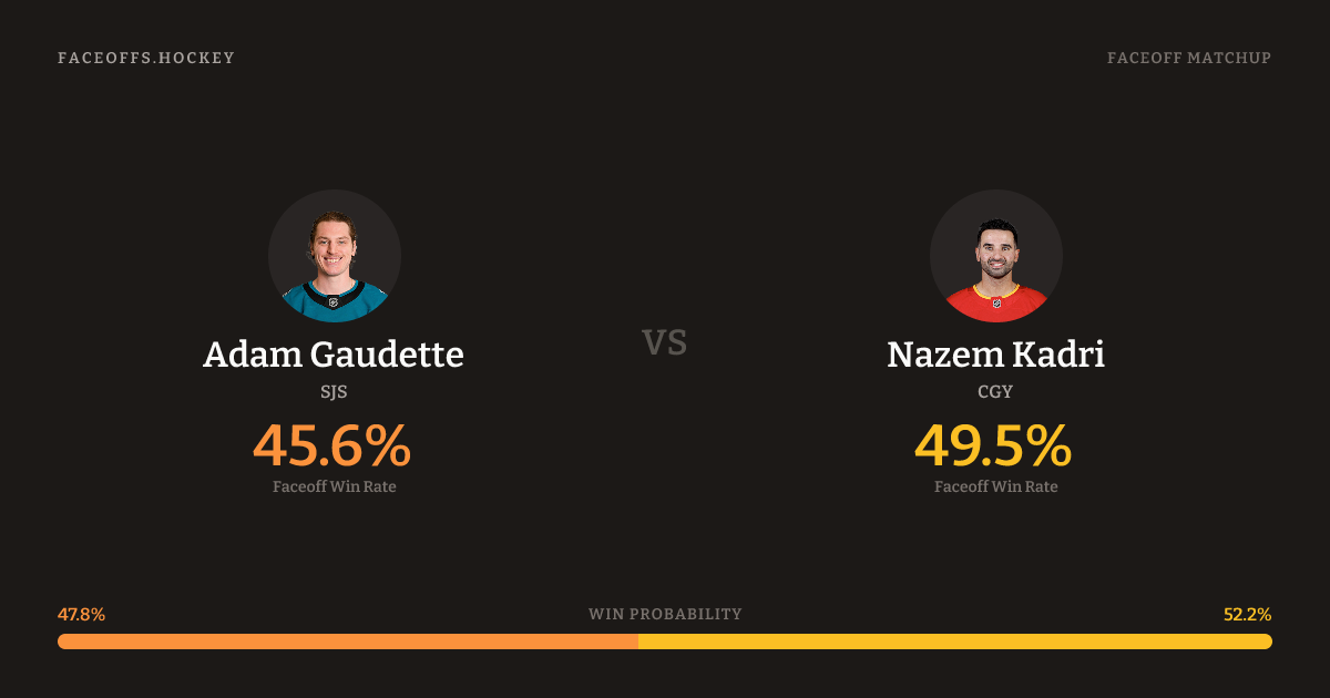 Adam Gaudette vs Nazem Kadri — Faceoff Head-to-Head