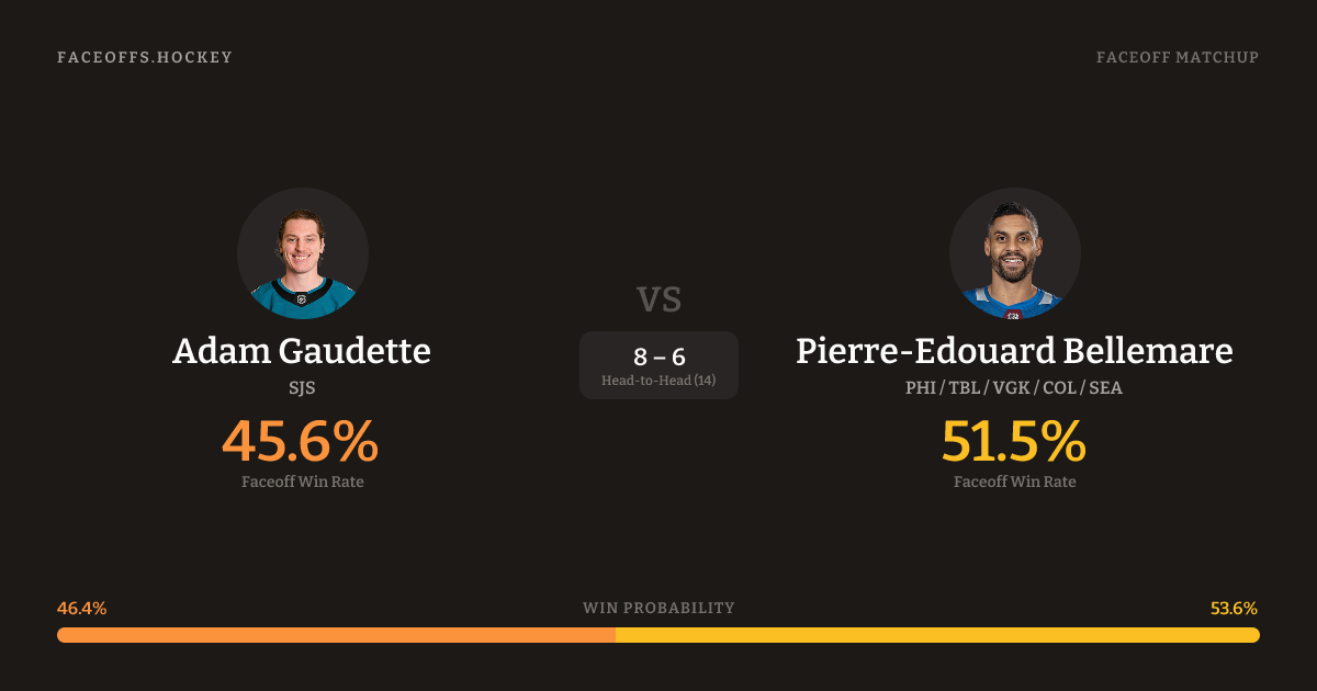 Adam Gaudette vs Pierre-Edouard Bellemare — Faceoff Head-to-Head