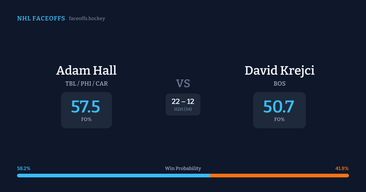 Adam Hall vs David Krejci — Faceoff Head-to-Head