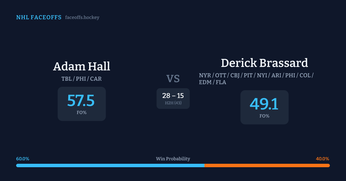 Adam Hall vs Derick Brassard — Faceoff Head-to-Head