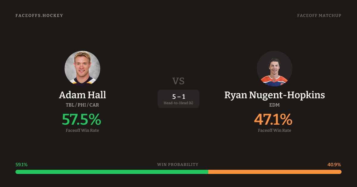 Adam Hall vs Ryan Nugent-Hopkins — Faceoff Head-to-Head