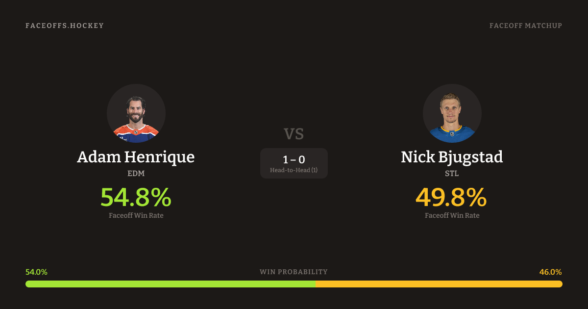 Adam Henrique vs Nick Bjugstad — Faceoff Head-to-Head