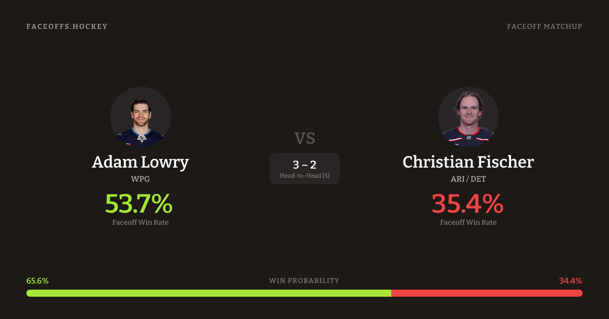 Adam Lowry vs Christian Fischer — Faceoff Head-to-Head