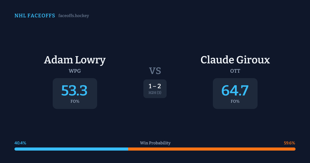 Adam Lowry vs Claude Giroux — Faceoff Head-to-Head