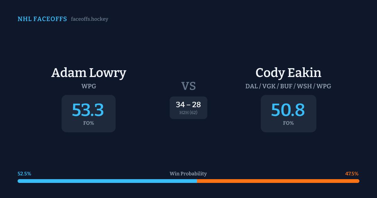 Adam Lowry vs Cody Eakin — Faceoff Head-to-Head