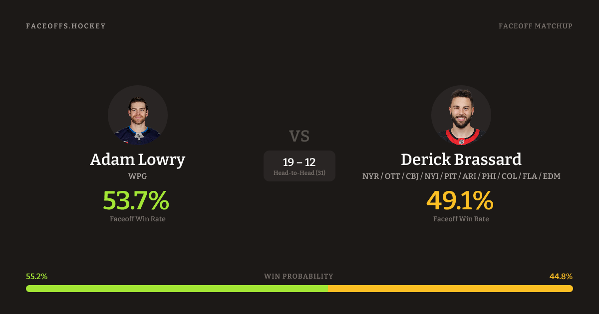 Adam Lowry vs Derick Brassard — Faceoff Head-to-Head
