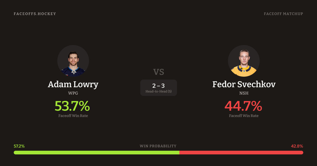 Adam Lowry vs Fedor Svechkov — Faceoff Head-to-Head
