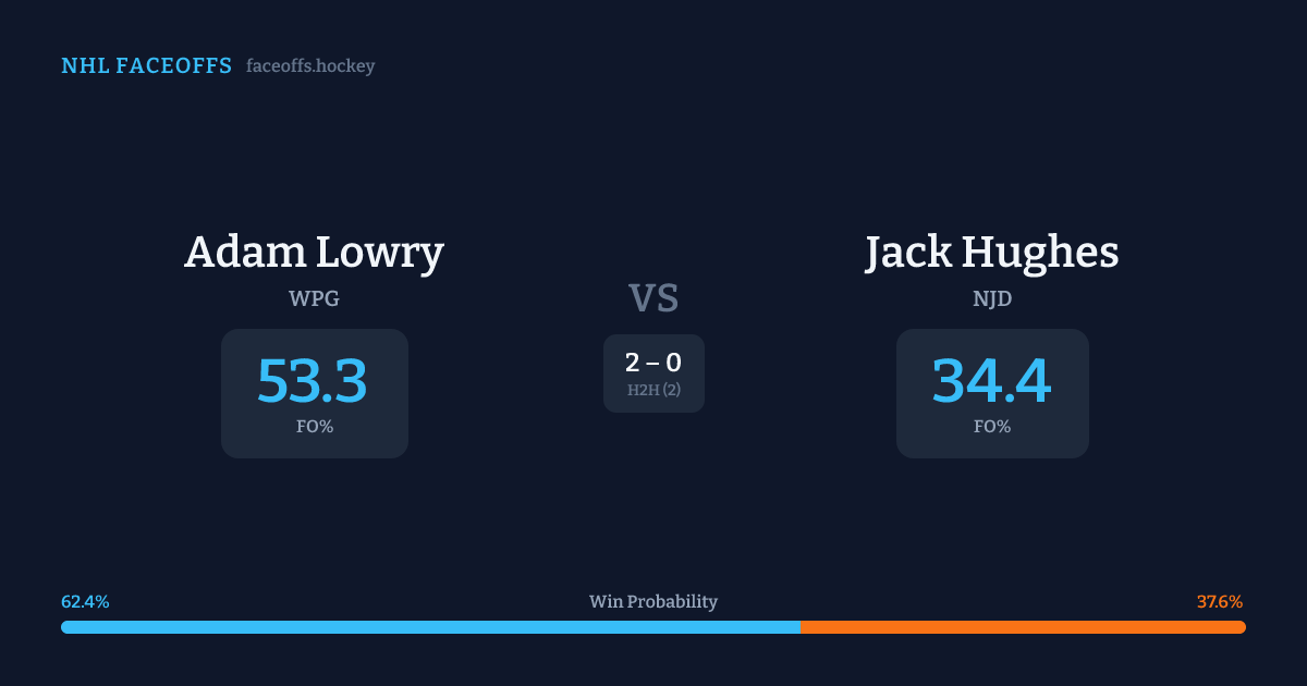 Adam Lowry vs Jack Hughes — Faceoff Head-to-Head