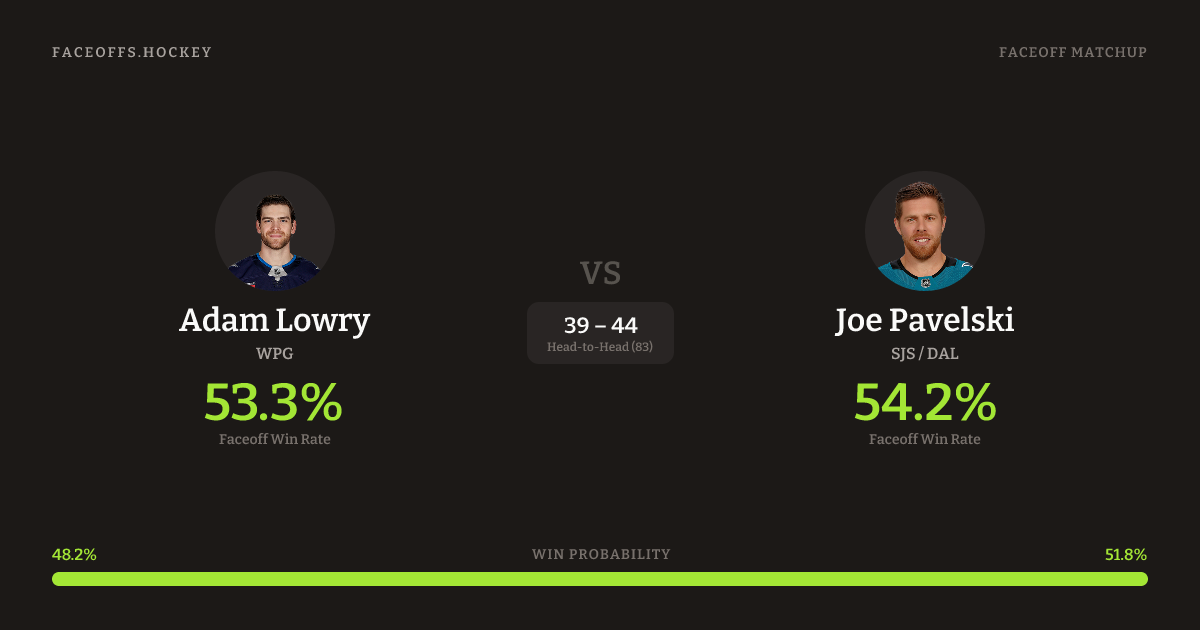Adam Lowry vs Joe Pavelski — Faceoff Head-to-Head