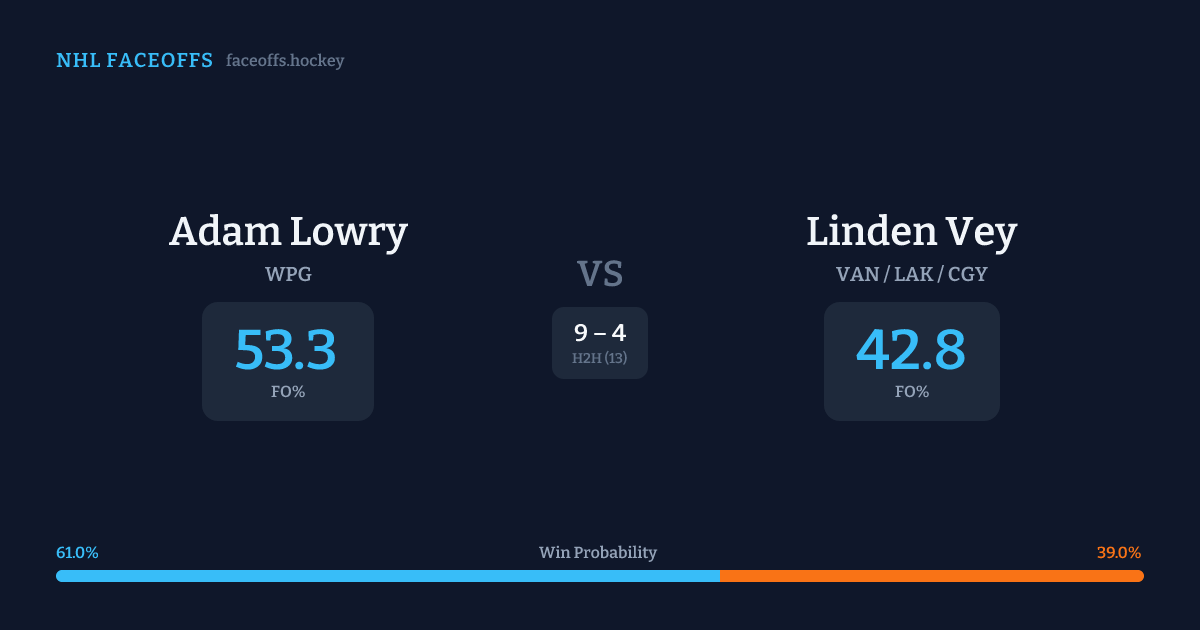 Adam Lowry vs Linden Vey — Faceoff Head-to-Head