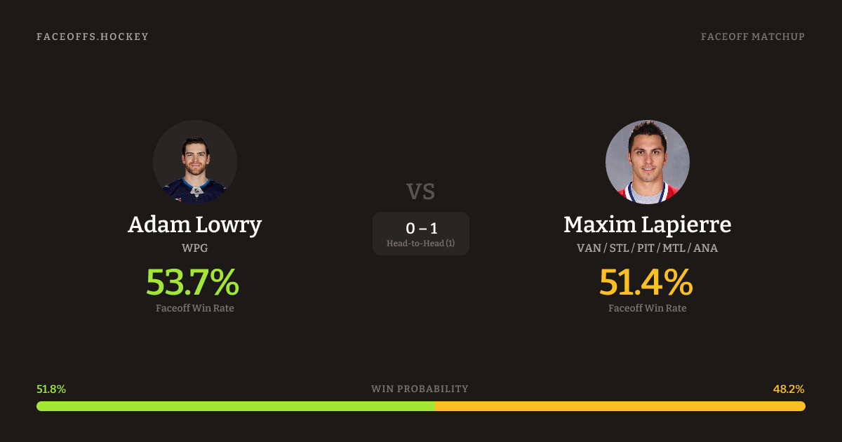 Adam Lowry vs Maxim Lapierre — Faceoff Head-to-Head
