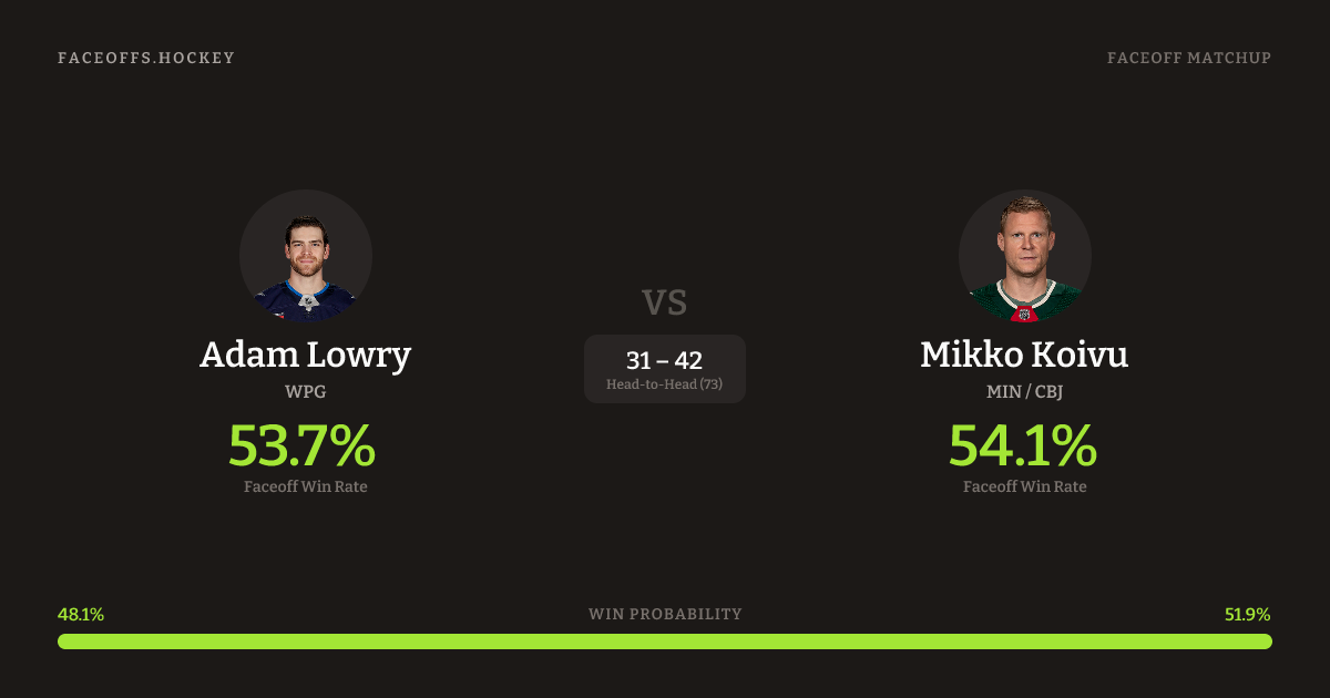 Adam Lowry vs Mikko Koivu — Faceoff Head-to-Head
