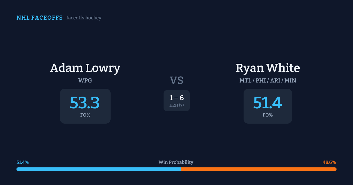 Adam Lowry vs Ryan White — Faceoff Head-to-Head