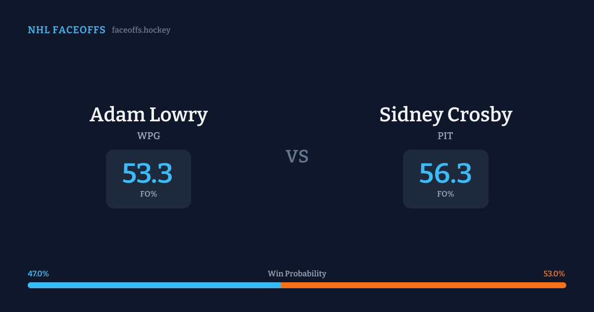 Adam Lowry vs Sidney Crosby — Faceoff Head-to-Head