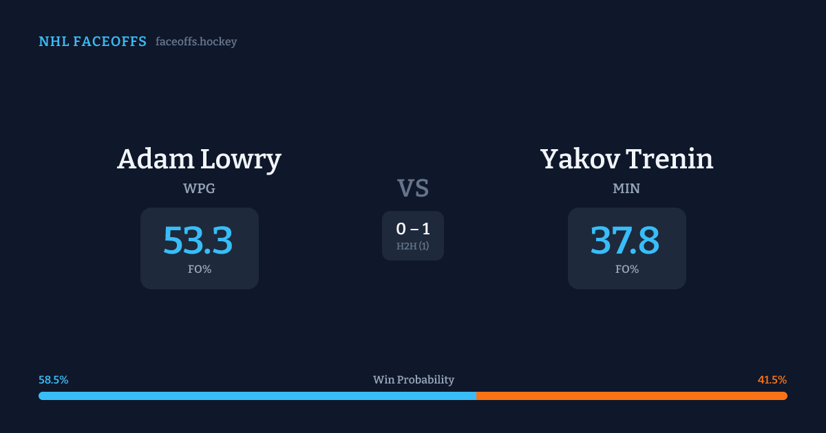 Adam Lowry vs Yakov Trenin — Faceoff Head-to-Head
