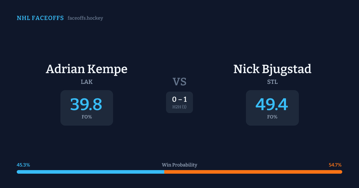 Adrian Kempe vs Nick Bjugstad — Faceoff Head-to-Head