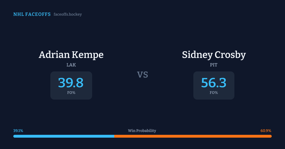 Adrian Kempe vs Sidney Crosby — Faceoff Head-to-Head