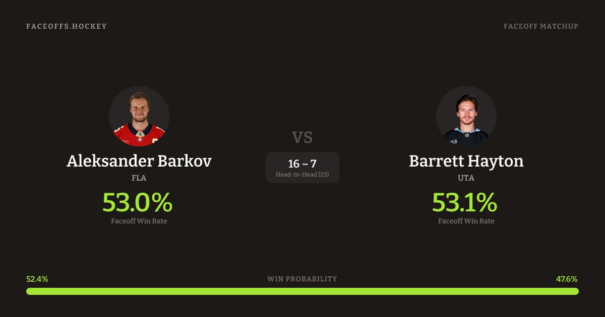 Aleksander Barkov vs Barrett Hayton — Faceoff Head-to-Head