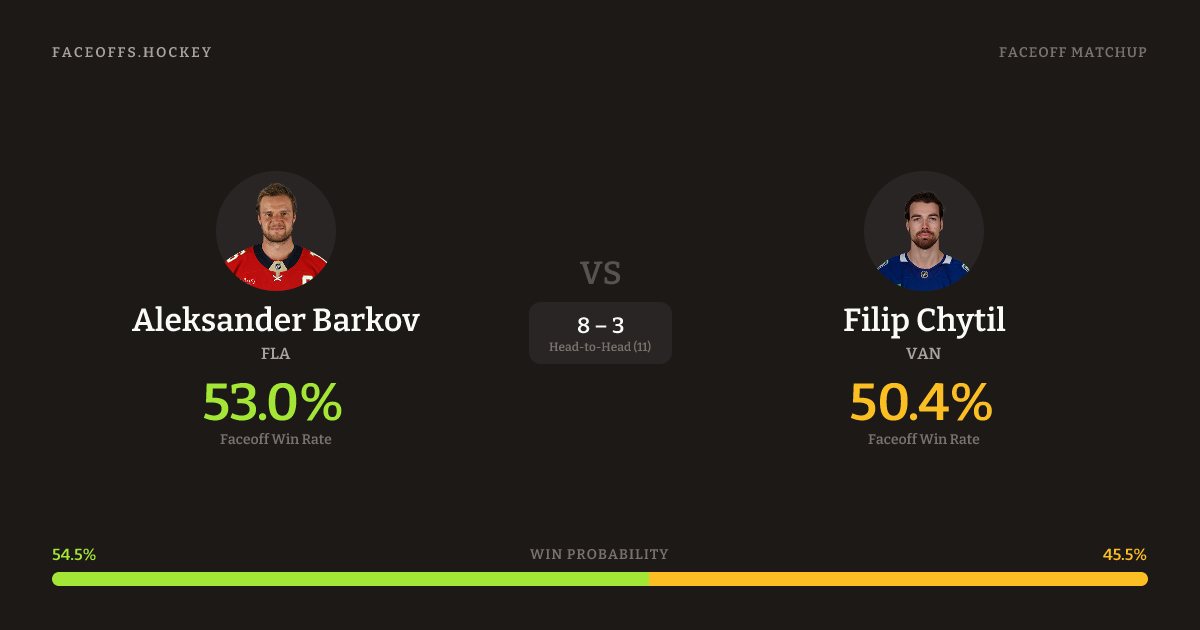 Barkov 54.0% vs Chytil 40.3% (+15.9%)