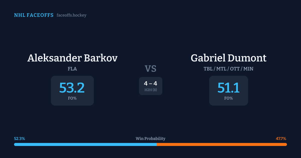 Aleksander Barkov vs Gabriel Dumont — Faceoff Head-to-Head