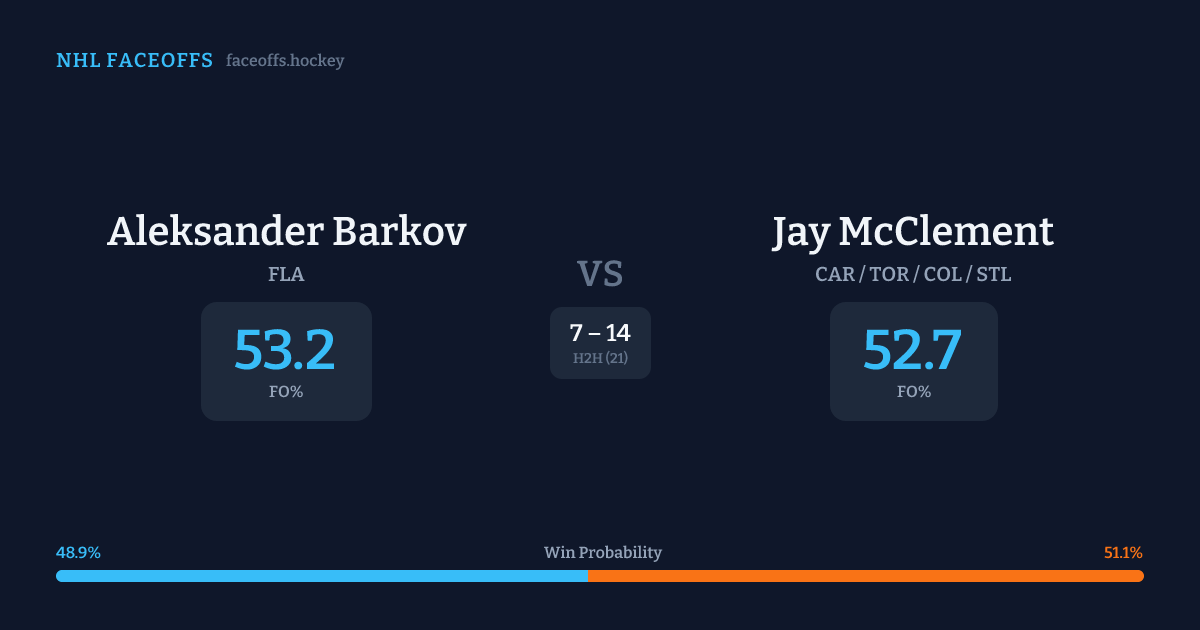 Aleksander Barkov vs Jay McClement — Faceoff Head-to-Head