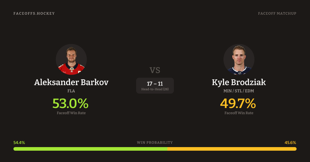Aleksander Barkov vs Kyle Brodziak — Faceoff Head-to-Head