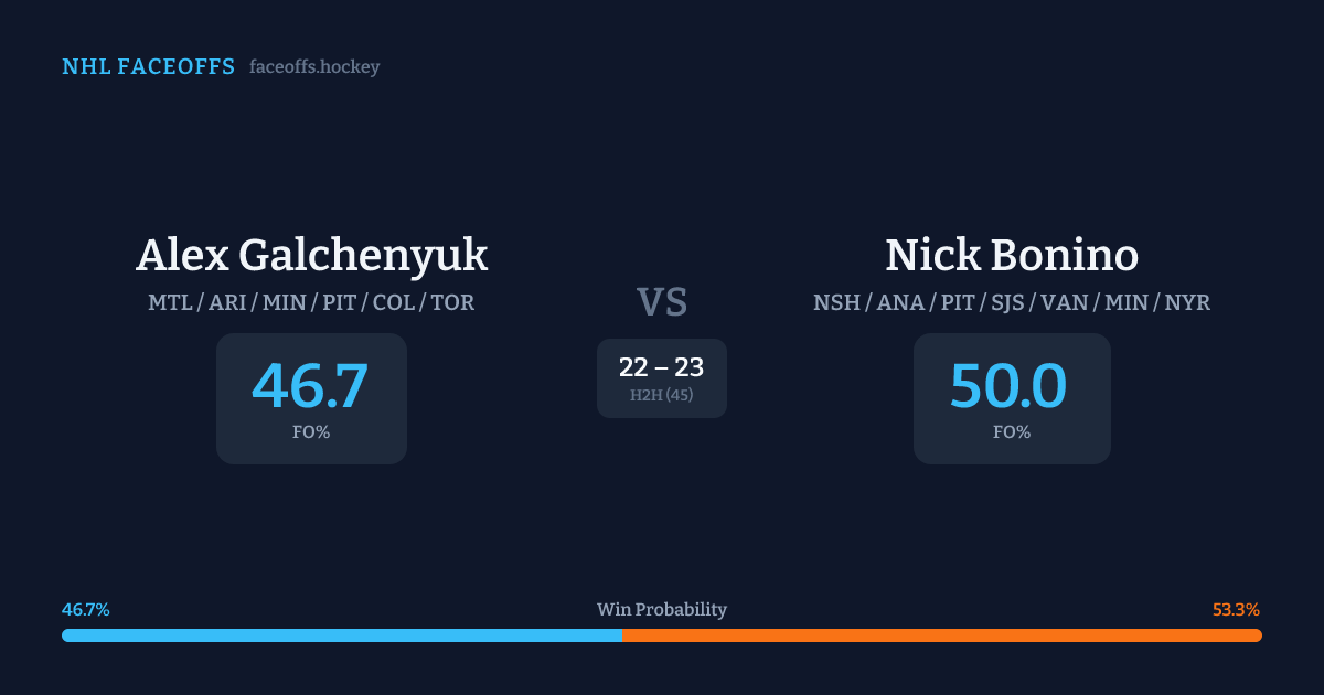Alex Galchenyuk vs Nick Bonino — Faceoff Head-to-Head