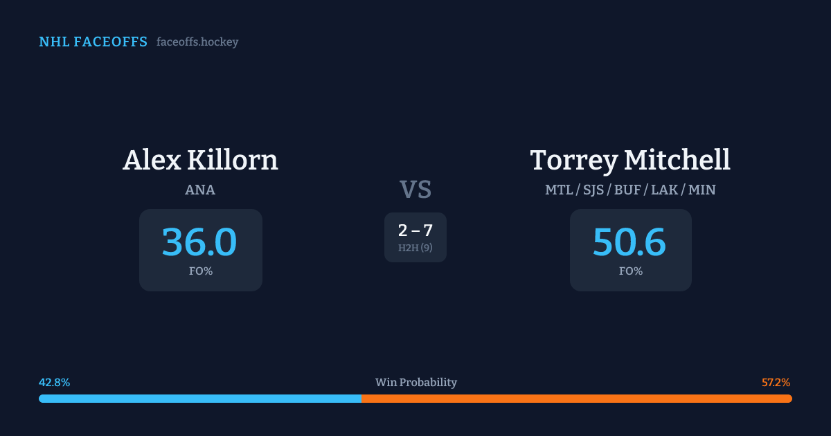 Alex Killorn vs Torrey Mitchell — Faceoff Head-to-Head