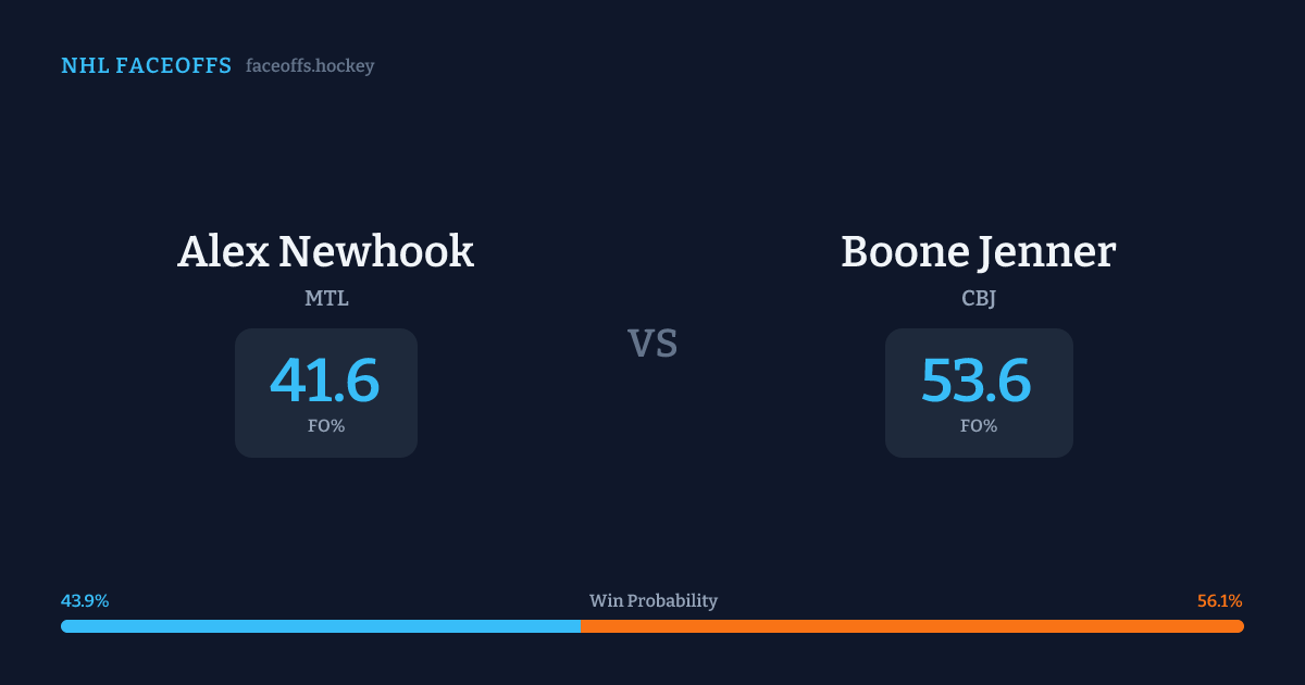 Alex Newhook vs Boone Jenner — Faceoff Head-to-Head