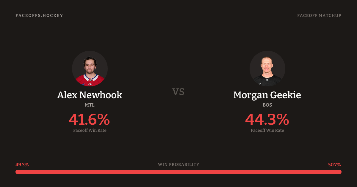 Newhook shoots left. Geekie is 48.7% vs left-shot opponents (437).