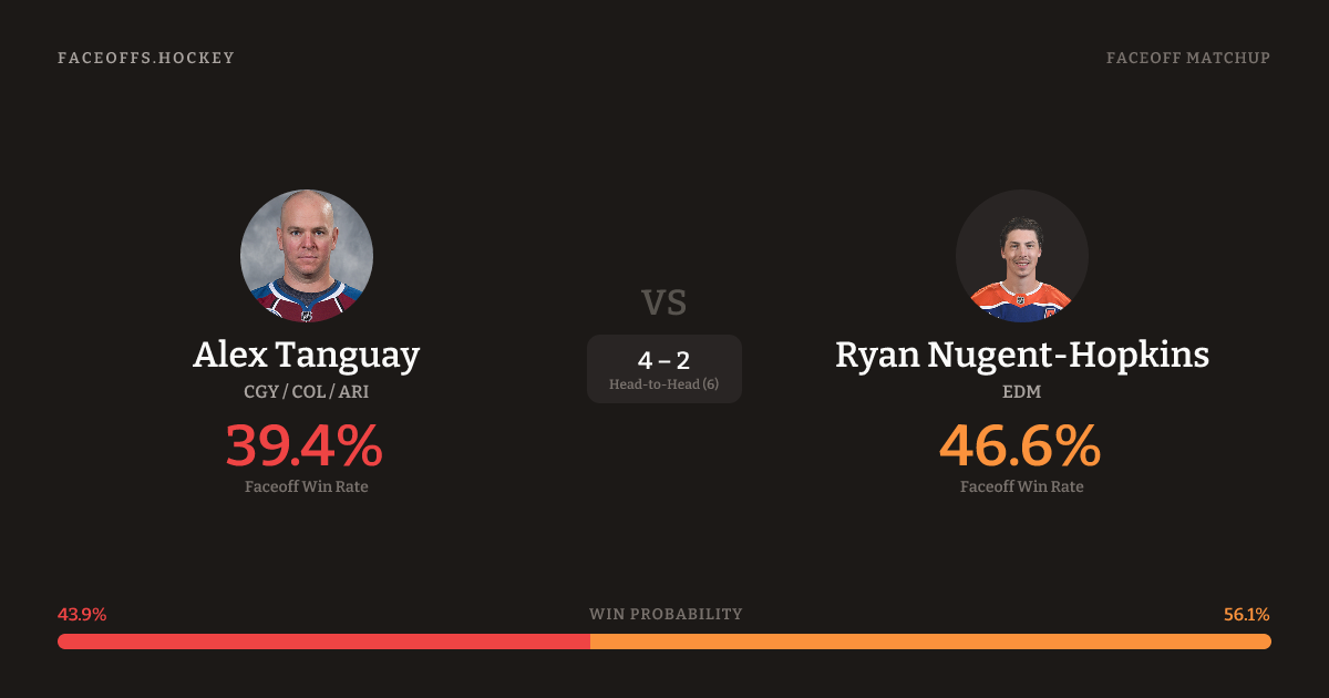 Alex Tanguay vs Ryan Nugent-Hopkins — Faceoff Head-to-Head