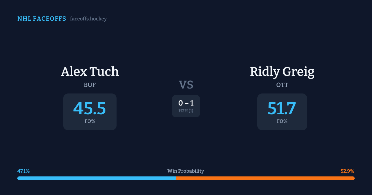 Alex Tuch vs Ridly Greig — Faceoff Head-to-Head