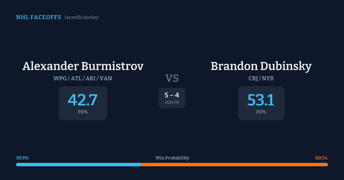Alexander Burmistrov vs Brandon Dubinsky — Faceoff Head-to-Head