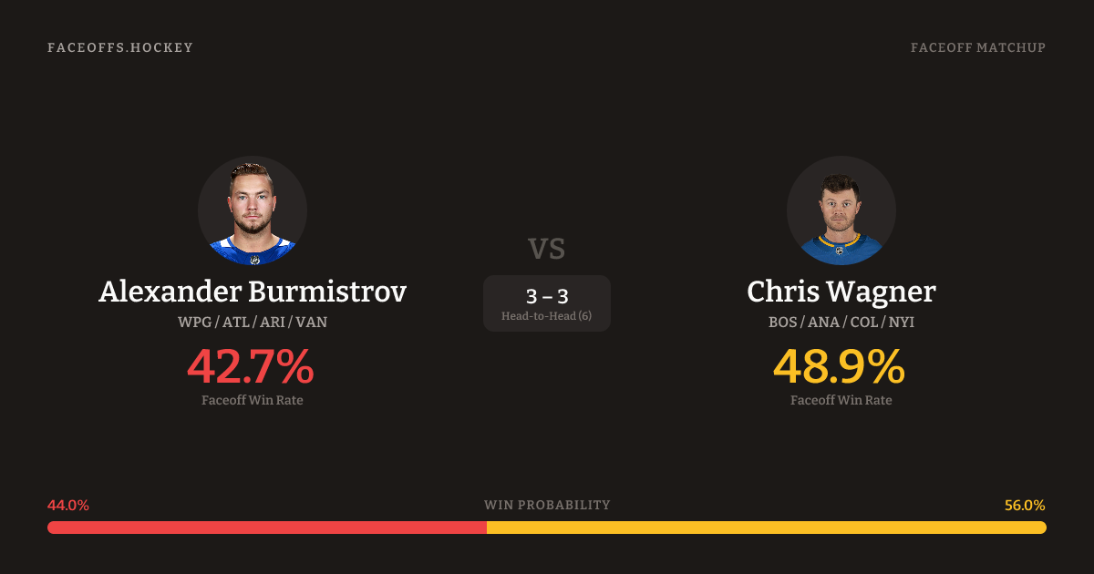 Alexander Burmistrov vs Chris Wagner — Faceoff Head-to-Head